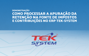 Treinamento Imperdível: Apuração de Retenção – ERP 4G! Pra inaugurar nossa agenda de demonstrações 2023 elegemos o tema “Como processar a apuração da retenção na fonte de impostos e contribuições no ERP Tek-System”! Dia 13 de Janeiro, de Leia Mais » 4 de janeiro de 2023